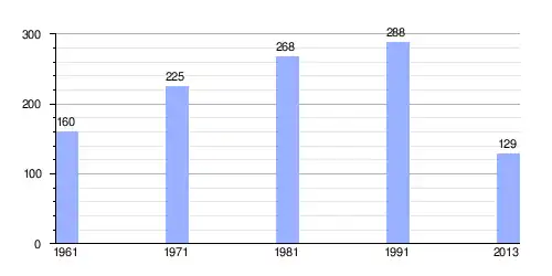 Hasta 2013 la población era de 129 habitantes,[4] con una densidad de población de 47,9 hab/km².[4]