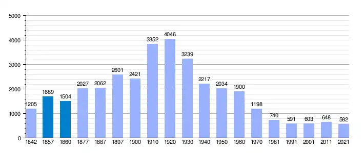 | Gráfica de evolución demográfica de Lucainena de las Torres[13] entre 1842 y 2021 |