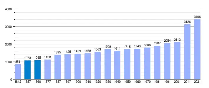 | Gráfica de evolución demográfica de Lucena del Puerto[2] entre 1842 y 2021 |
