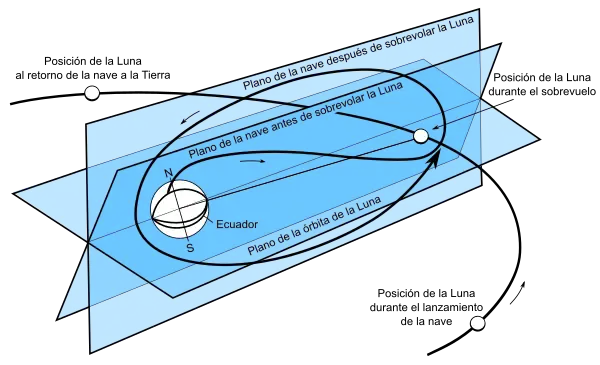 La maniobra de asistencia gravitatoria se utilizó por primera vez en 1959, cuando la Luna 3 fotografió la cara oculta de la Luna de la Tierra. Después del lanzamiento desde el Cosmódromo de Baikonur, Luna 3 pasó por detrás de la Luna de sur a norte y se dirigió de nuevo a la Tierra. La gravedad de la Luna cambió la órbita de la nave espacial; también debido al propia movimiento orbital de la Luna, el plano orbital de la nave espacial fue también modificado. La órbita de retorno se calculó de manera que la nave espacial pasó de nuevo sobre el hemisferio norte, donde se encuentran las estaciones de tierra soviéticas. La maniobra se basó en la investigación realizada bajo la dirección de Mstislav Keldysh en el Instituto Steklov de Matemáticas.[1][2]