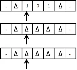 - donde representa el símbolo blanco 0, o b (según se desee denotar),