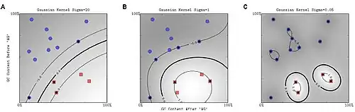 Estos métodos están propiamente relacionados con problemas de clasificación y regresión. Dado un conjunto de ejemplos de formación (de muestras) podemos etiquetar las clases y formar una SVM para construir un modelo que prediga la clase de una nueva muestra. Intuitivamente, una SVM es un modelo que representa a los puntos de muestra en el espacio, separando las clases a 2 espacios lo más amplios posibles mediante un hiperplano de separación definido como el vector entre los 2 puntos, de las 2 clases, más cercanos al que se llama vector soporte. Cuando las nuevas muestras se ponen en correspondencia con dicho modelo, en función de los espacios a los que pertenezcan, pueden ser clasificadas a una o la otra clase.
