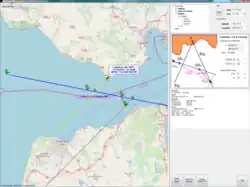 - Se traza sobre la carta el rumbo supuesto en ausencia de corriente (sea éste verdadero o de superficie) y se marcan en él las situaciones supuestas en que se encontrará el barco a la hora en que se toman las dos demoras: S1 y S2. Se dibujan en carta las dos demoras verdaderas prolongando sus líneas hasta cortar la línea del rumbo supuesto.