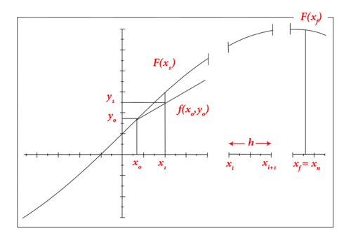 Considere el problema de calcular la pendiente de una curva desconocida que comienza en un punto dado y satisface una cierta ecuación diferencial dada. Se puede pensar en la ecuación diferencial como una fórmula que nos permite calcular la pendiente de la recta tangente a la curva en cualquier punto de la curva, una vez que el punto ha sido calculado.