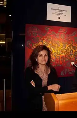 ![]() Mónica Sarmiento ofreciendo una conferencia en NYPL. | ||