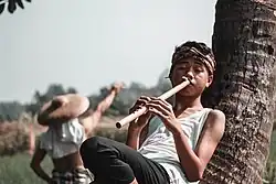 Suling es la palabra sundanesa para seruling, la palabra en indonesio, que significa 'flauta'. Hechas de bambú, las flautas indonesias siempre son sopladas por un extremo y varían en tamaño. La posición de los dedos cambia la longitud de onda de la resonancia sonora dentro del cuerpo del suling. Dependiendo de la distancia del agujero más cercano a la cabeza del suling, se pueden producir diferentes notas. La velocidad del flujo de aire también puede modificar la frecuencia del tono. Una nota con el doble de frecuencia se puede producir mayormente soplando aire en el orificio de la cabeza del suling con el doble de velocidad. Generalmente, cuanto más corto es el suling, más alto es el tono. Este simple suling produce melodías que tradicionalmente se han interpretado como el sonido del aprendizaje alegre. Hay muchas regiones en Indonesia que utilizan el suling como instrumento tradicional y tienen diferentes nombres locales para él. En Java, Sonda y Bali, este instrumento es comúnmente llamado suling; en Minang, se llama saluang; en Toraja, se llama flauta Lembang; en Halmahera, se llama bangsil, y en Nusa Tenggara Occidental, se llama silu. El suling es una flauta de bambú indonesia que se utiliza en varias interpretaciones de conjuntos musicales tradicionales, incluyendo gamelán, gambus y dangdut. Esta flauta está hecha de un tubo de bambú largo y de paredes delgadas llamado tamiang, y una delgada banda de ratán rodea la boquilla.