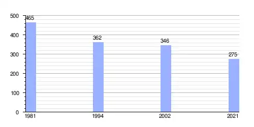 Hasta 2021 la población era de 275 habitantes,[2] con una densidad de población de 16,26 habitantes por kilómetro cuadrado.[2]