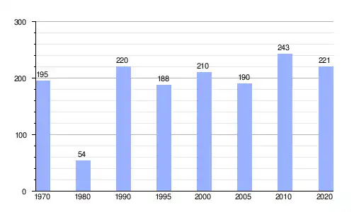 | Gráfica de evolución demográfica de Macayo y Naranjo 3.ª Sección (San Agustín) entre 1970 y 2020 |