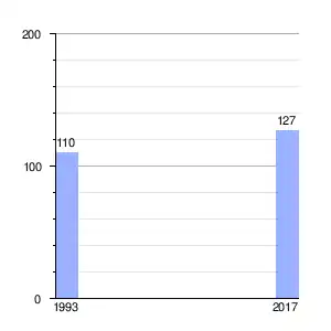 | Gráfica de evolución demográfica de Machay entre 1993 y 2017 |