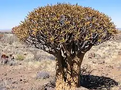 - Aloe dichotoma es uno de los árboles más conocidos de Namibia y una de las más grandes suculentas en esta montaña, excediendo los 5 metros de altura. No es frecuente encontrar algunos ejemplares en la parte superior de las laderas que dan al sur.