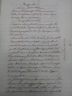 - ↑ a b Documentos y deposiciones contenidas en la declaración jurada por el notario Pietro Orlandi el 27 de junio de 1838.