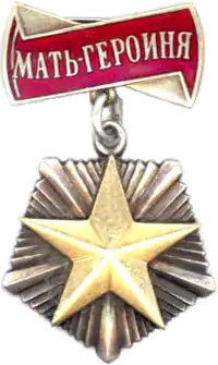 El título honorífico de Madre Heroína (en ruso: Мать-героиня) fue un premio estatal de la Unión Soviética y actualmente de Rusia. Otorgado por tener y criar una familia numerosa. La intención del estado no era solo honrar a estas familias numerosas, sino también aumentar la asistencia financiera para mujeres embarazadas, madres de familias numerosas y madres solteras, y promover un mayor nivel de salud en la madre y el niño.[1] El premio se estableció en 1944 y siguió existiendo hasta la caída de la Unión Soviética en 1991. El 15 de agosto de 2022, Vladímir Putin firmó un decreto que revive este título honorífico (véase Madre Heroína).[2][3]