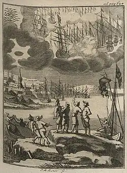 - ↑ a b De Grandine et Tonitruis pp. 8-10: "Plerosque autem vidimus et audivimus tanta dementia obrutos, tanta stultitia alienatos, ut credant et dicant quandam esse regionem, quæ dicatur Magonia, ex qua naves veniant in nubibus, in quibus fruges, quæ grandinibus decidunt, et tempestatibus pereunt, vehantur in eamdem regionem, ipsis videlicet nautis aëreis dantibus pretia tempestariis, et accipientibus frumenta vel ceteras fruges. Ex his item tam profunda stultitia excoecatis, ut haec posse fieri credant, vidimus plures in quodam conventu hominum exhibere vinctos quatuor homines, tres viros, et unam feminam, quasi qui de ipsis navibus ceciderint :; quos scilicet per aliquot dies in vinculis detentos, tandem collecto conventu hominum exhibuerunt, ut dixi, in nostra præsentia, tanquam lapidandos. Sed tamen vincente veritate, post multam ratiocinationem, ipsi qui eos exhibuerant, secundum propheticum illud confusi sunt, sicut confunditur fur quando deprehenditur".