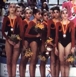 ![]() Maider (de pie, segunda a la derecha) con el bronce en el Europeo de Bucarest (1993). | ||||||||||||||||
