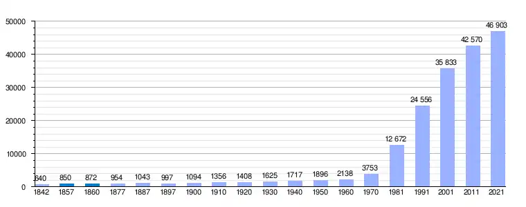 | Gráfica de evolución demográfica de Mairena del Aljarafe[7] entre 1842 y 2021 |