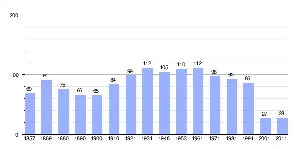 | Gráfica de población de Mali Kozinac 1857-2011 |