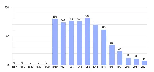 | Gráfica de población de Mali Miletinac 1857-2021 |