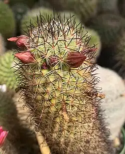 Mammillaria duoformis (biznaga de cáliz rojo) es una especie endémica de biznaga perteneciente a la familia Cactaceae que se distribuye en Morelos, Puebla y Oaxaca en México. La palabra duoformis proviene del latín que significa “dos formas” en referencias a la forma de sus cuatro espinas centrales, tres de ellas rectas y una en forma de gancho.[2]