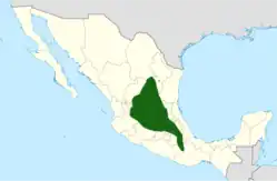 Endémica de los estados de Aguascalientes, Coahuila, Guanajuato, Hidalgo, Jalisco, Ciudad de México, México, Nuevo León, Oaxaca, Puebla, Querétaro, San Luis Potosí, Zacatecas en México.[1]