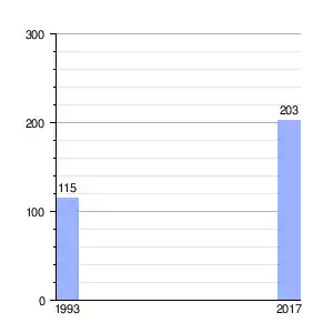 | Gráfica de evolución demográfica de Manás entre 1993 y 2017 |