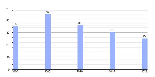 | Gráfica de evolución demográfica de Mandrás (parroquia) entre 2000 y 2023 |