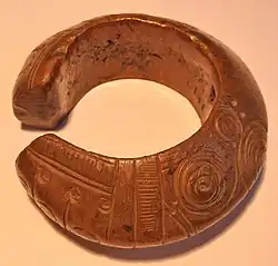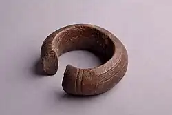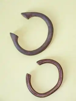 La Manilla es una forma de dinero, usualmente hecha de bronce o cobre, que se usaba en África occidental.[1] Se produjeron en grandes cantidades y en una amplia gama de diseños, tamaños y pesos. Se originó antes del período colonial, tal vez como resultado del comercio con el Imperio portugués, la manilla continuó sirviendo como dinero y objeto decorativo hasta finales de la década de 1940 y todavía se utilizan como ornamento en algunos contextos. En la conciencia popular, están particularmente asociados con el Comercio atlántico de esclavos.[2]