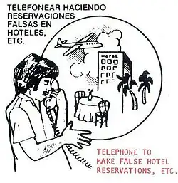 Página instruyendo sobre telefonear a hoteles para realizar reservaciones falsas.