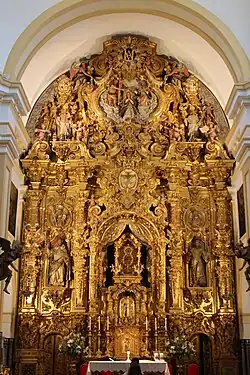 - 1749. Retablo mayor de la iglesia del Convento de Nuestra Señora de Loreto. Espartinas. La obra fue promovida por el anterior lector y guardián del convento, Francisco de San Buenaventura, que entonces era obispo de Cuba, Florida, Yucatán y Guadalajara, y lo hizo a través del presbítero Bartolomé Marín, de Villanueva del Ariscal.[31]