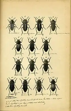 - ↑ a b Martínez de la Escalera, M., 1942. Trabajos entomológicos. Muy especialmente sobre coleópteros de España y Noroeste de África. Madrid. 1-32. (p. 32).
