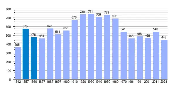 | Gráfica de evolución demográfica de Maqueda[10] entre 1842 y 2021 |