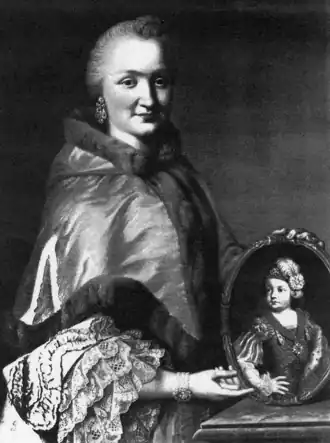 ![]() Retrato anónimo sosteniendo una miniatura de su hijo mayor Carlos Augusto. | ||