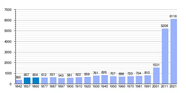 | Gráfica de evolución demográfica de María de Huerva[9] entre 1842 y 2021 |