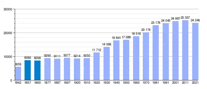 | Gráfica de evolución demográfica de Marín[9] entre 1842 y 2021 |