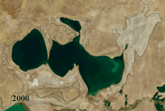 - ↑ a b JAXA - South Aral Sea shrinking but North Aral Sea expanding