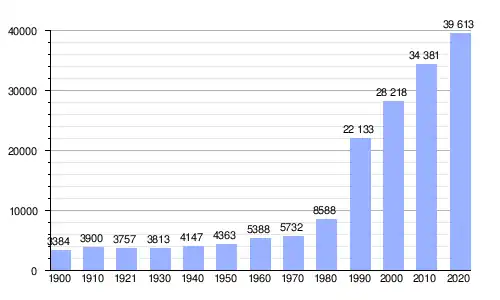 | Gráfica de evolución demográfica de Maravatío de Ocampo entre 1900 y 2020 |