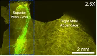 - ↑ Stephenson RS, Boyett MR, Hart G, Nikolaidou T, Cai X, Corno AF, et al (2012). «Contrast Enhanced Micro-Computed Tomography Resolves the 3-Dimensional Morphology of the Cardiac Conduction System in Mammalian Hearts.». PLoS ONE (Public Library of Science) 7 (4): e35299. Consultado el 17 de diciembre de 2017.