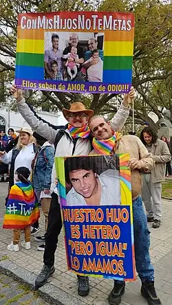 Miguel y Mario son un matrimonio de militantes gay[14] que participan desde la primera Marcha de la Diversidad en 1992, son de Mercedes y adoptaron a Camilo en 1997 pasando a ser la primera familia homoparental en América en adoptar un hijo legítimo.[15]