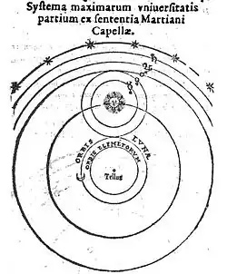 - ↑ a b «Martianus Minneus Felix Capella». Encyclopedia Britanica (en inglés). 1911.