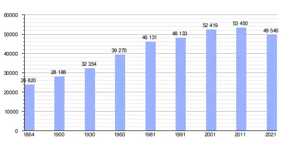 | Gráfica de evolución demográfica de Marco de Canaveses entre 1864 y 2021 |