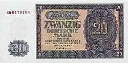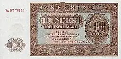 El 24 de julio de 1948 fue puesta en circulación una nueva serie de billetes conocida oficialmente como Deutsche Mark von der Deutschen Notenbank hasta 1964.