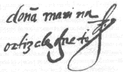 Podría ser que ante el acatamiento de V.M. se querelle de mi doña Marina diciendo que no he cumplido la cédula que V.M. le mandó dar para que, dejando ella el repartimiento de Arauco, se le diese otra tanta renta como la que tiene, en otra parte. Y para que V.M. sepa la verdad, oso decir que doña Marina no tiene todo el repartimiento que dejó el gobernador Valdivia, su marido, porque ha hecho dejación de mucha parte de él, que se ha dado y encomendado a parientes suyos; y lo que al presente tiene está de guerra y no le da renta alguna; y sin embargo desto, le daba yo en términos de esta ciudad de Santiago ciertos indios que andan en la labor de las minas de oro, y no los quiso.