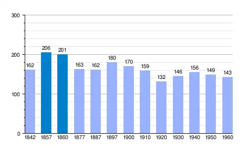 | Gráfica de evolución demográfica de Marmellar de Abajo[3] entre 1842 y 1960 |