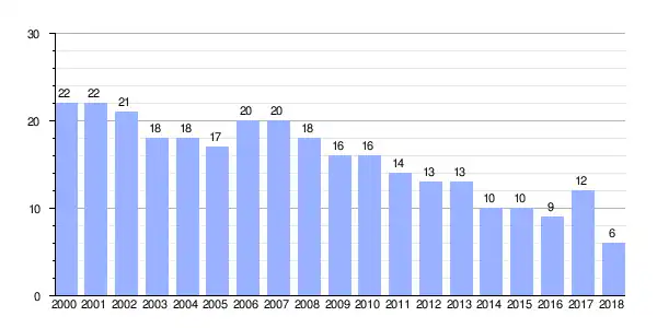 | Gráfica de evolución demográfica de Maroxo de Arriba entre 2000 y 2018 |