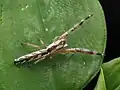 Estas arañas son muy difíciles de encontrar cuando no se mueven. Una vez que se mueven, lo hacen extremadamente rápido y de manera brusca. El primer par de piernas no se usa para caminar, sino que se extiende al frente. Cuando los machos ven a una hembra, se acercan con las patas delanteras extendidas y saludando antes del apareamiento.[4]