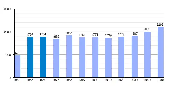 | Gráfica de evolución demográfica de Marquina[7] entre 1842 y 1950 |