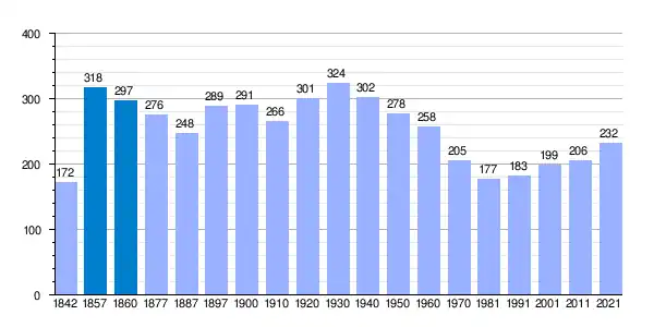 | Gráfica de evolución demográfica de Martín Muñoz de la Dehesa[1] entre 1842 y 2021 |