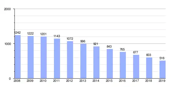 | Gráfica de evolución demográfica de Martín de la Jara[3] entre 1842 y 2021 |