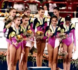 - Entrega de medallas en la modalidad de gimnasia rítmica por conjuntos en Atlanta 1996
