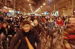 - ↑ Gordon, Rachel. «Critical Mass celebrating 15 years of free-form bicycle advocacy».