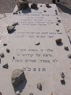 - ↑ a b c Issacharoff, Avi y Chaim Levinson (28 de febrero de 2010). «Settlers Remember Gunman Goldstein; Hebron Riots Continue». Haaretz. Consultado el 7 de diciembre de 2017.